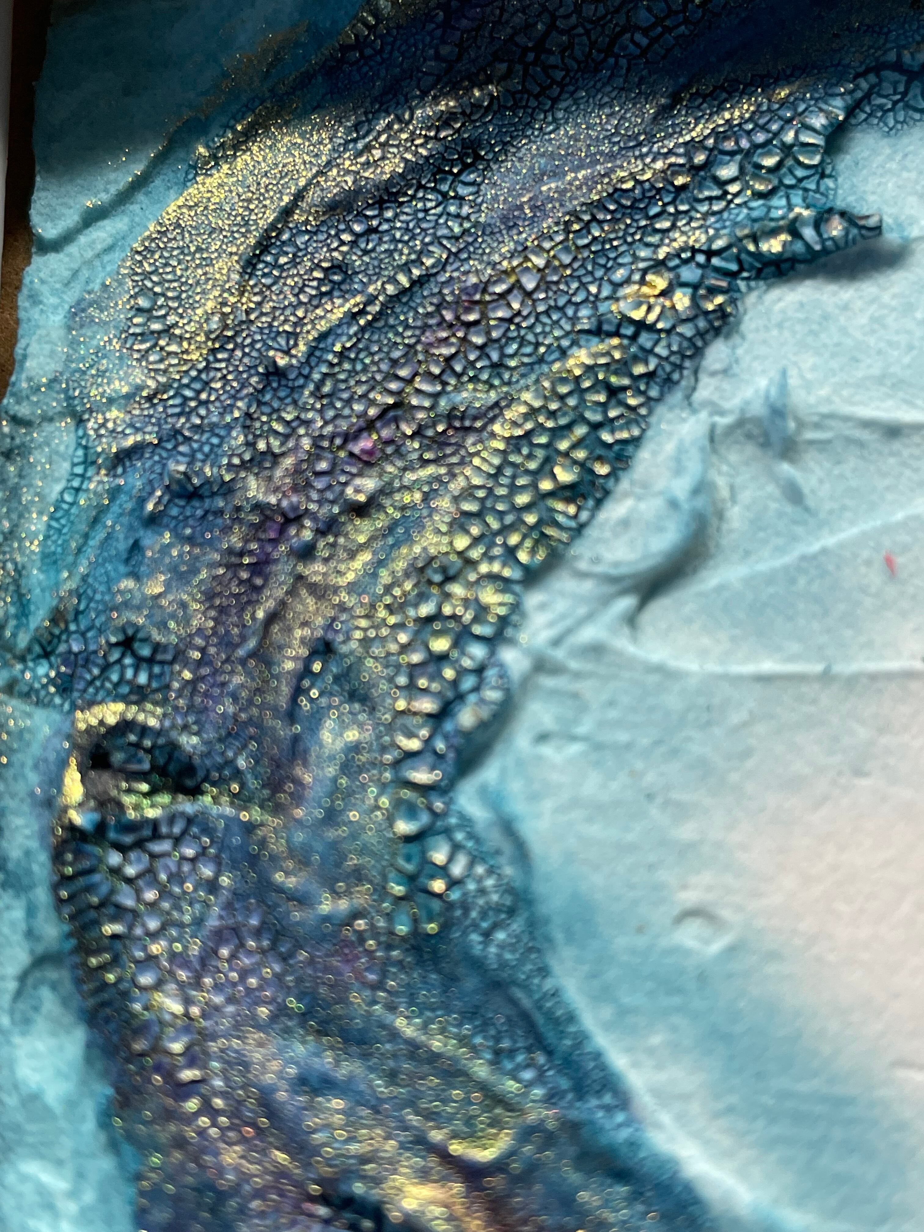 立体感のある表現と、ブルー系のグラデーションが美しい作品です。