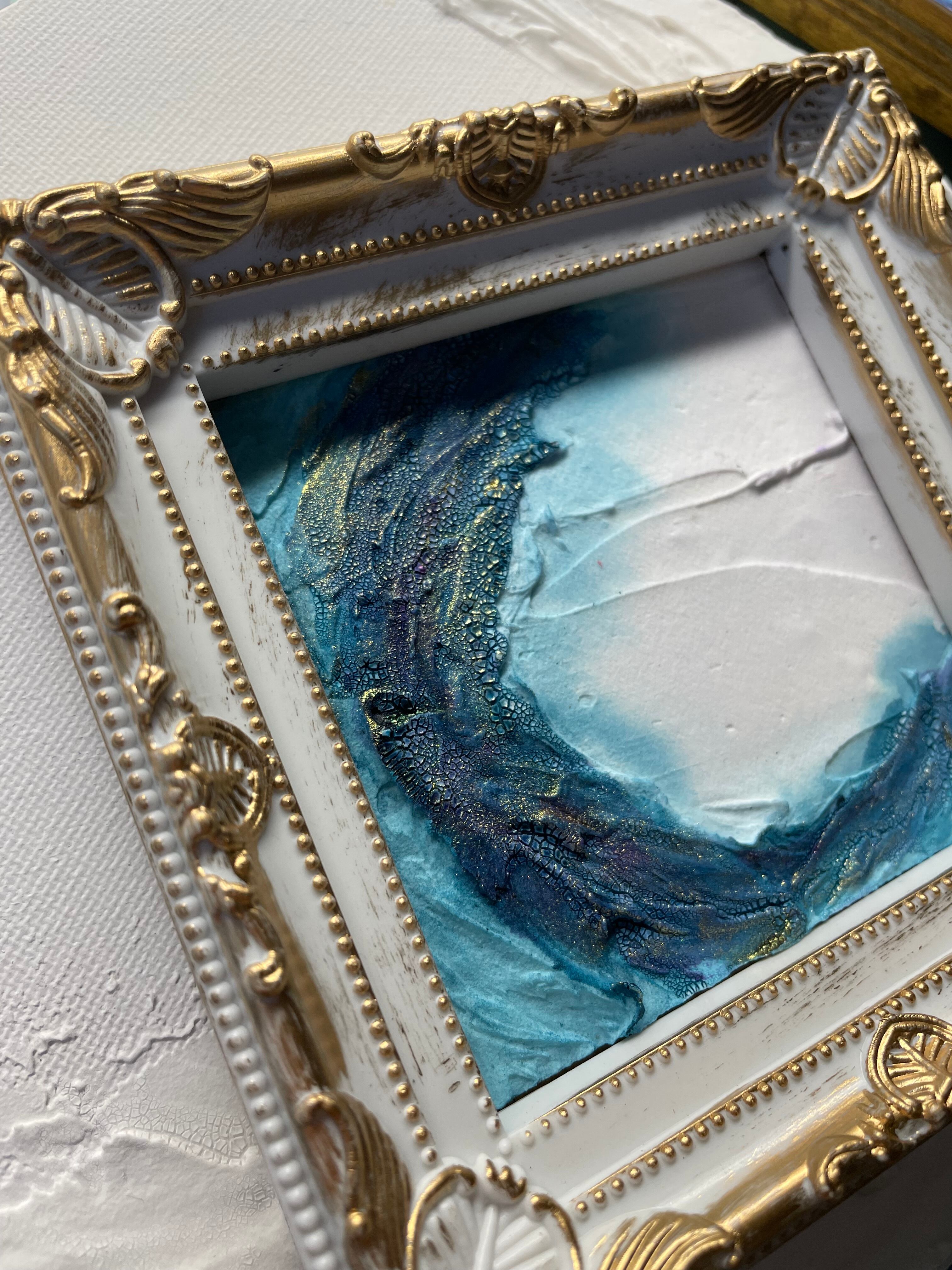 波をモチーフにしたテクスチャーアートのミニパネルです。