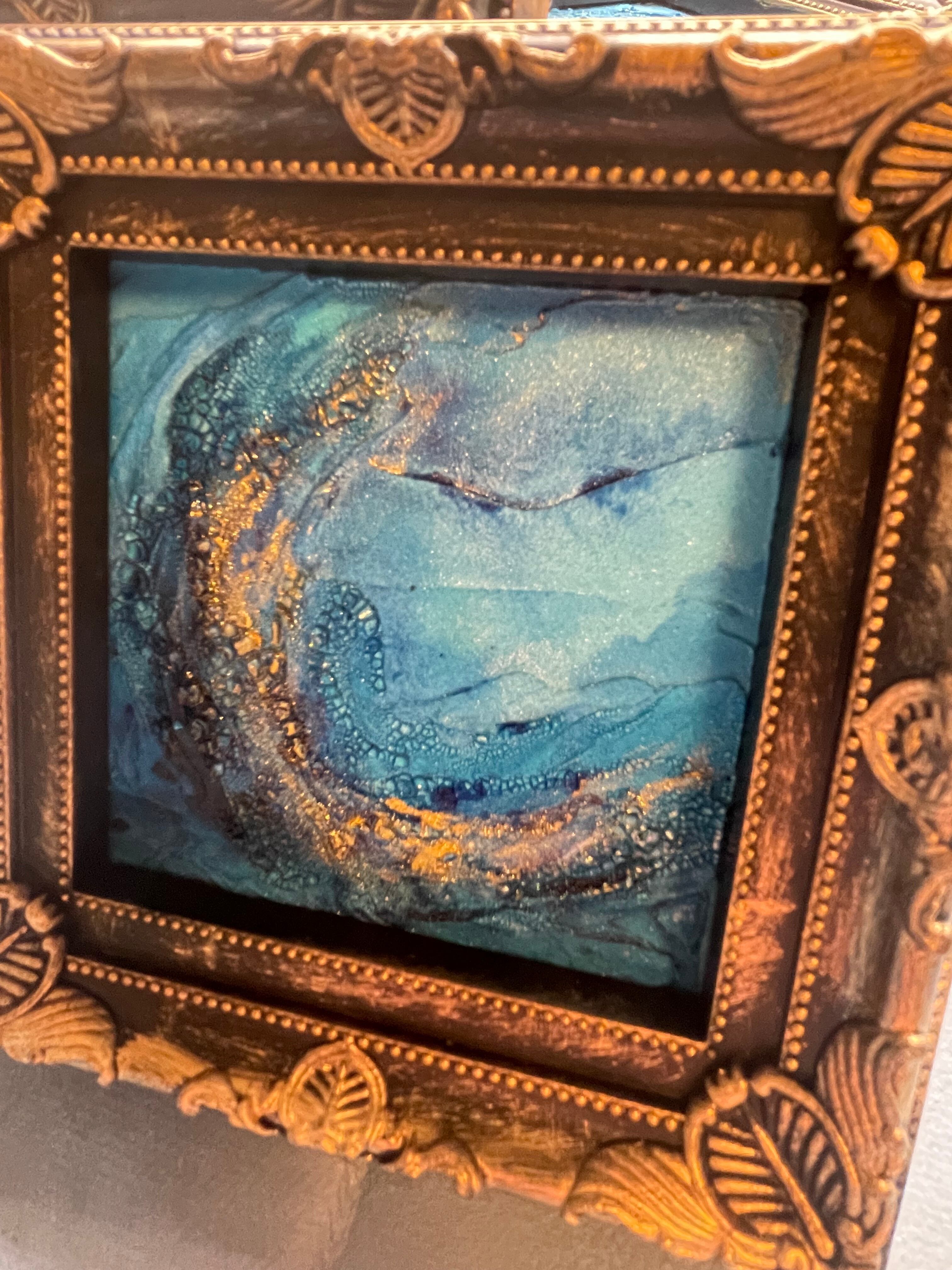 波をモチーフにしたテクスチャーアートのミニパネルです。