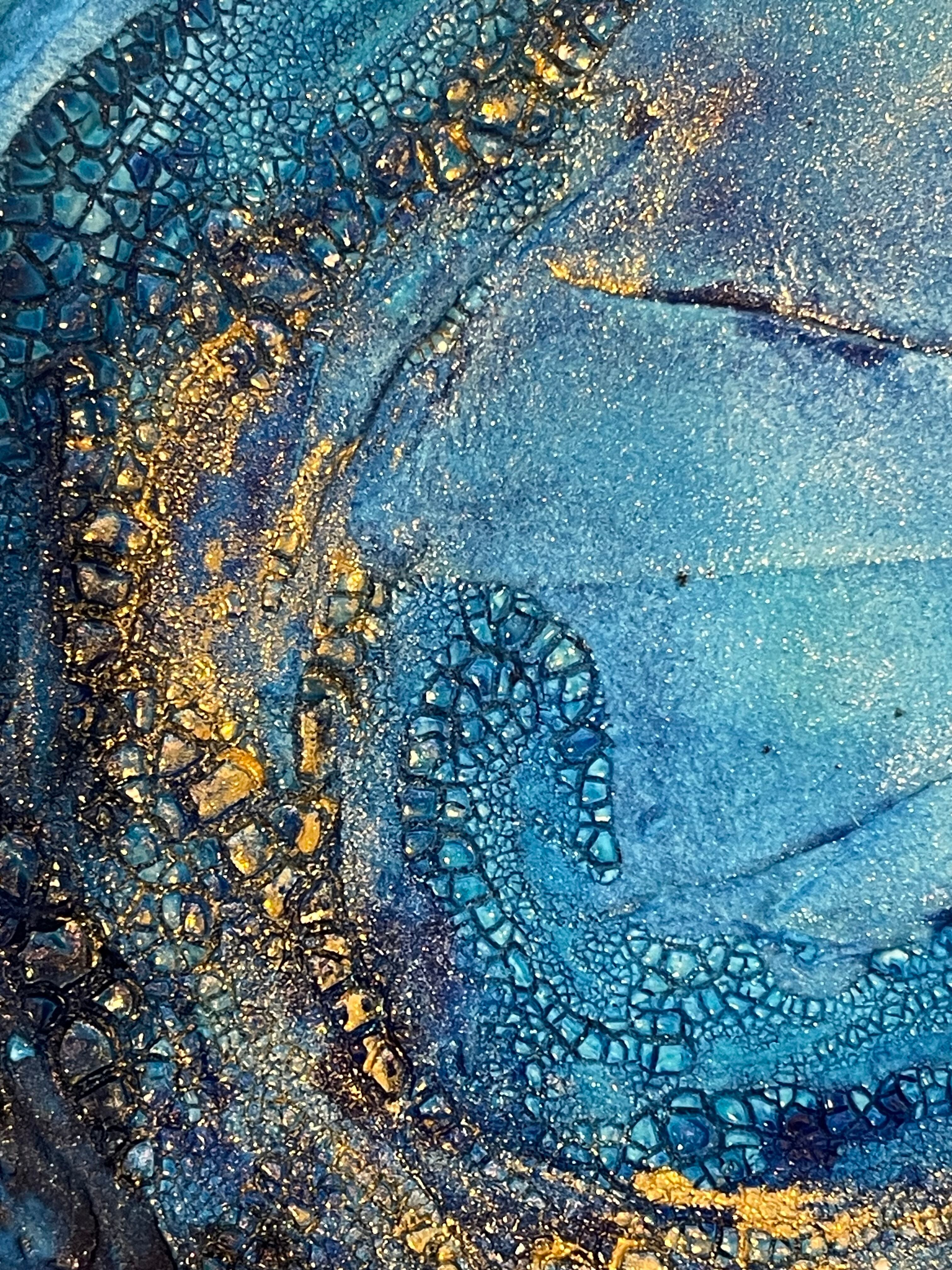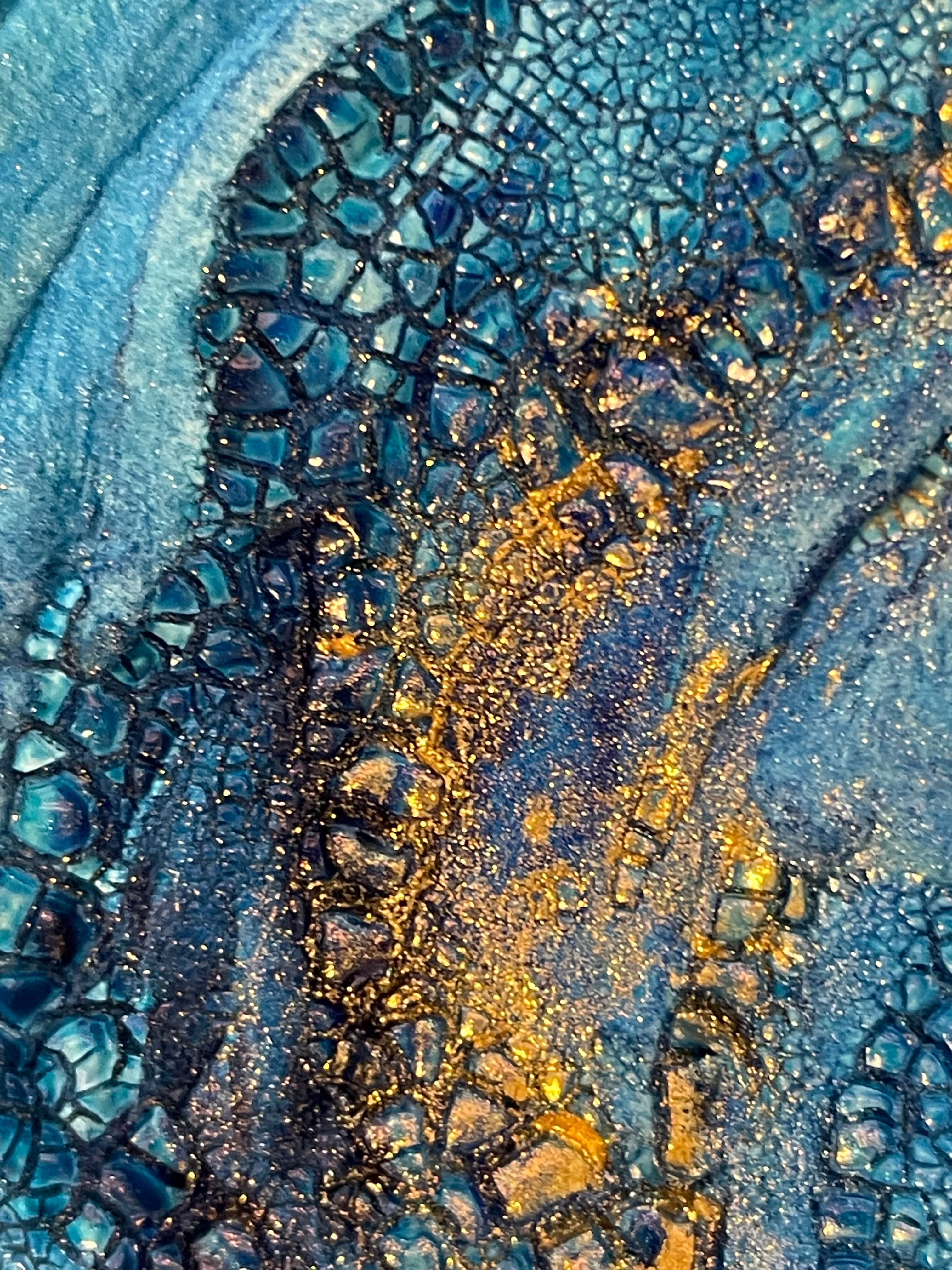 立体感のある表現と、ブルー系のグラデーションが美しい作品です。