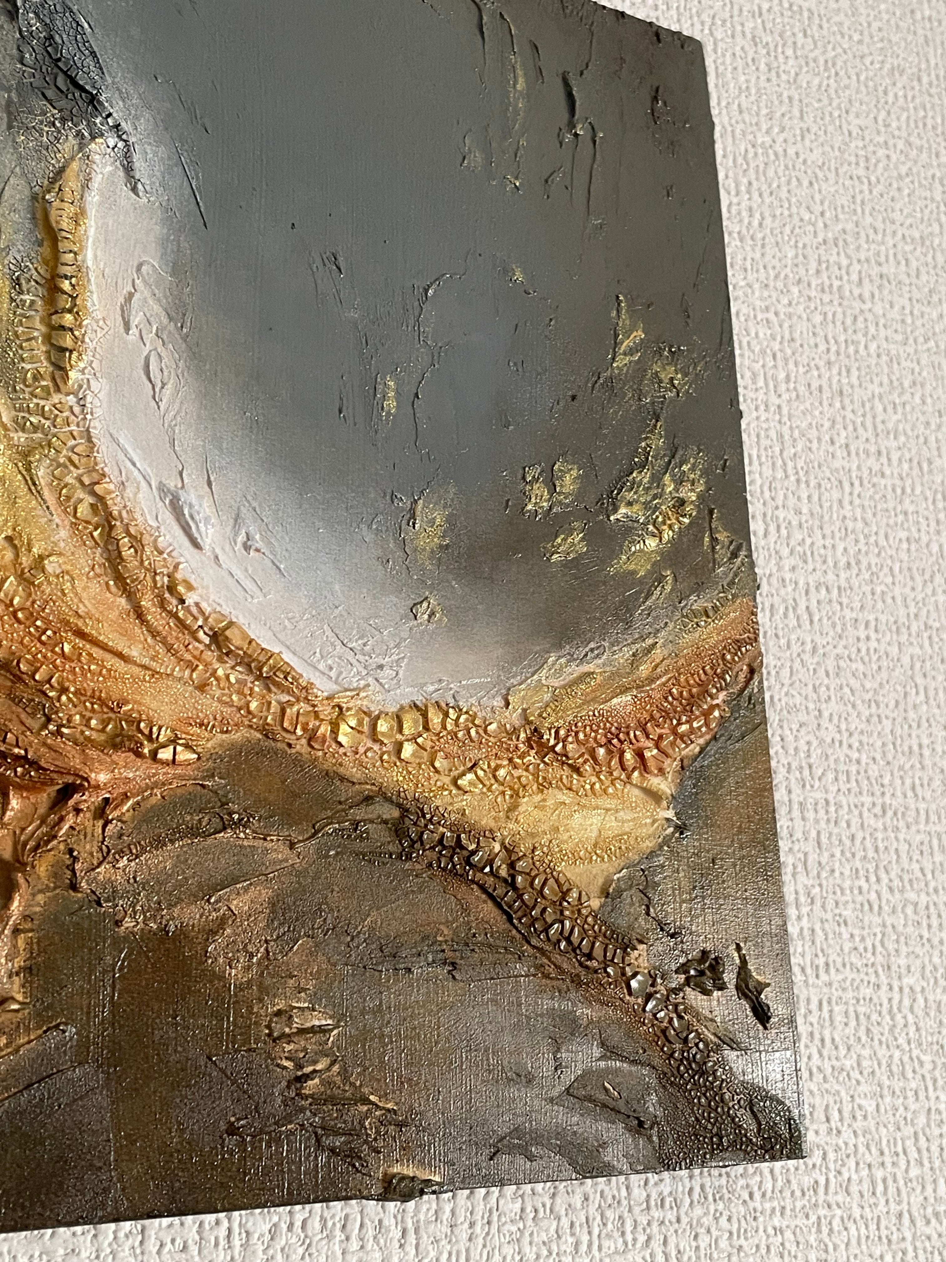 抽象画の原画です。テクスチャーアートで立体感があり、モダンな雰囲気のインテリアアートとしてお部屋を彩ります。一点物のアート作品をお探しの方におすすめです。