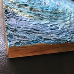 木製キャンバスにモデリングペーストで絵を描き、アクリル絵の具で色付けしました。