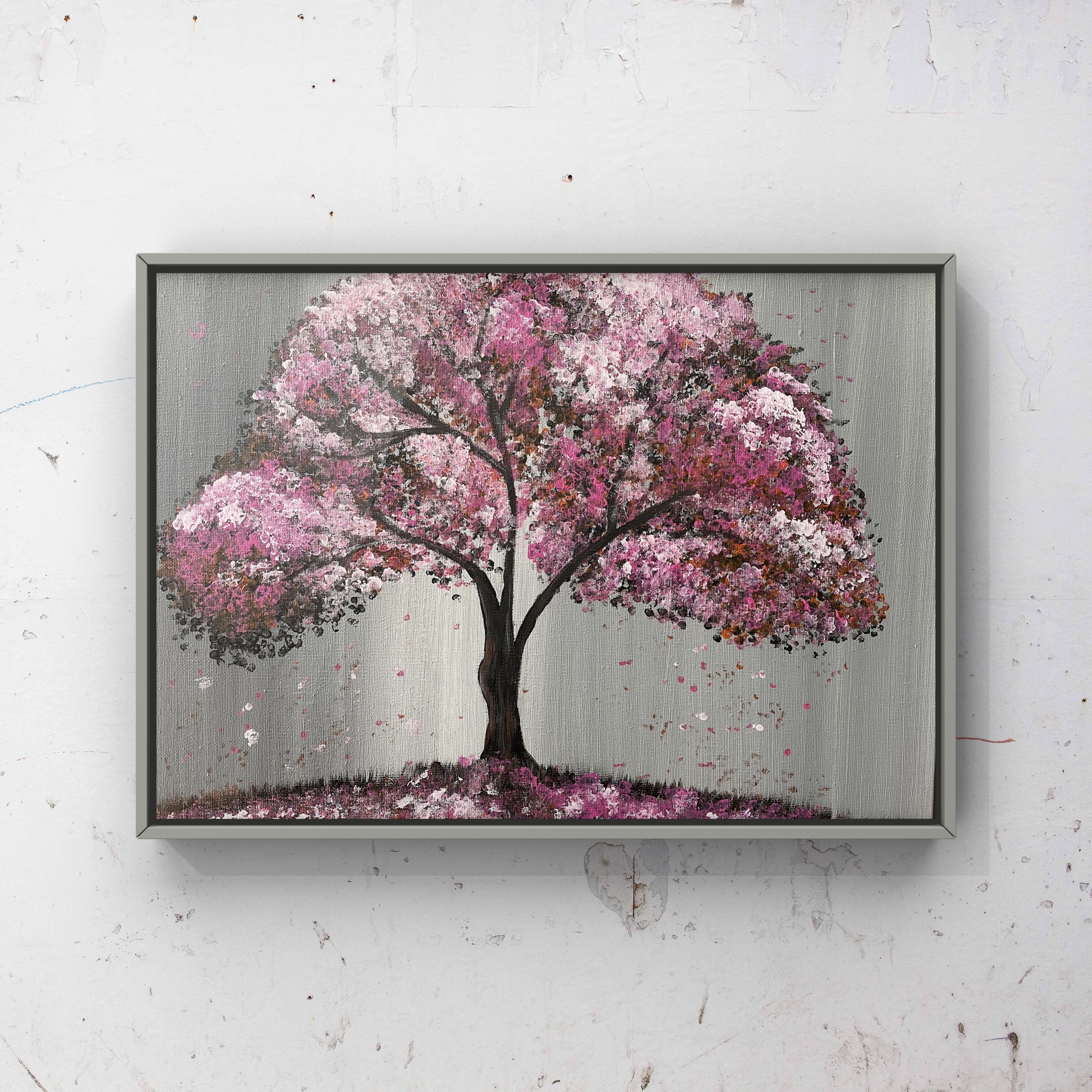 N様オーダー F8布張りキャンバス。 桜の木のオーダーいただきました。 背景をグレーにした事で桜カラーがより引き立つようにしました。